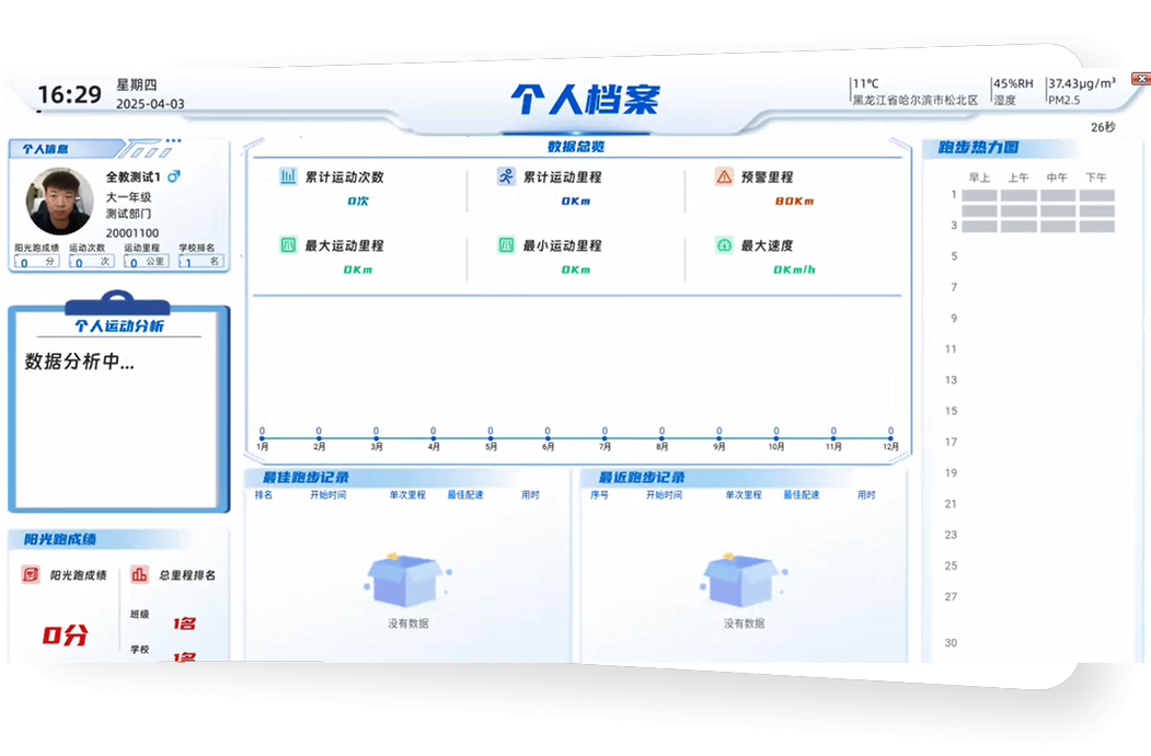 学生通过人脸、校园卡等身份识别随时进入操场,自由参加各项运动训练并累积数据。