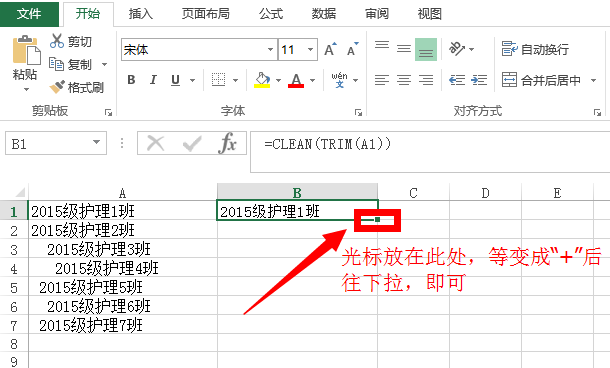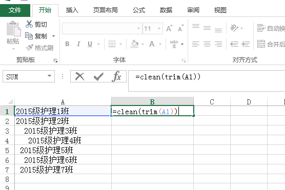 1、另选一列,然后写上"=clean(trim(text))"