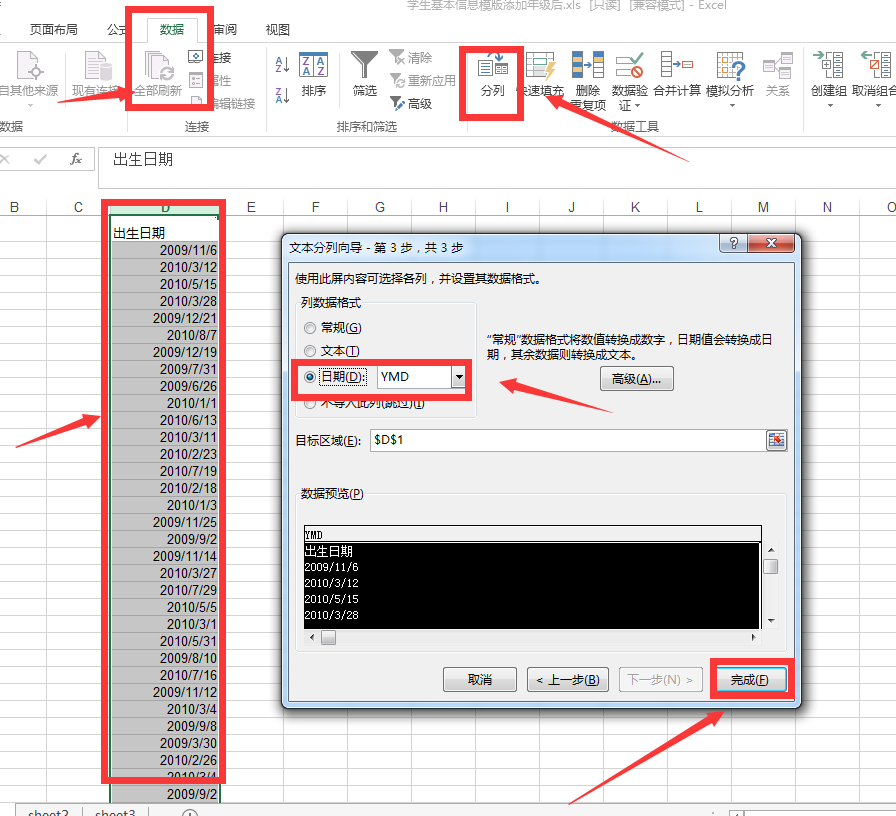 22、在上传学生基本信息模版遇到出生日期格式问题怎么修改?