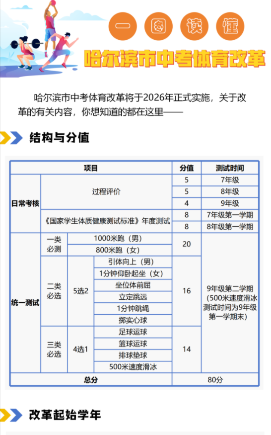 一图读懂 | 哈尔滨市中考体育改革 2025年09月01日 159 文章转自哈尔滨教育局公众号 相关推荐 哈尔滨市中考体育与健康测试项目规则(修订... 2025-09-01 71 哈尔滨市中考体育与健康测试项目规则(修订)公布 查看全文 一图读懂 | 哈尔滨市中考体育改革 2025-09-01 160 一图读懂 | 哈尔滨市中考体育改革 查看全文